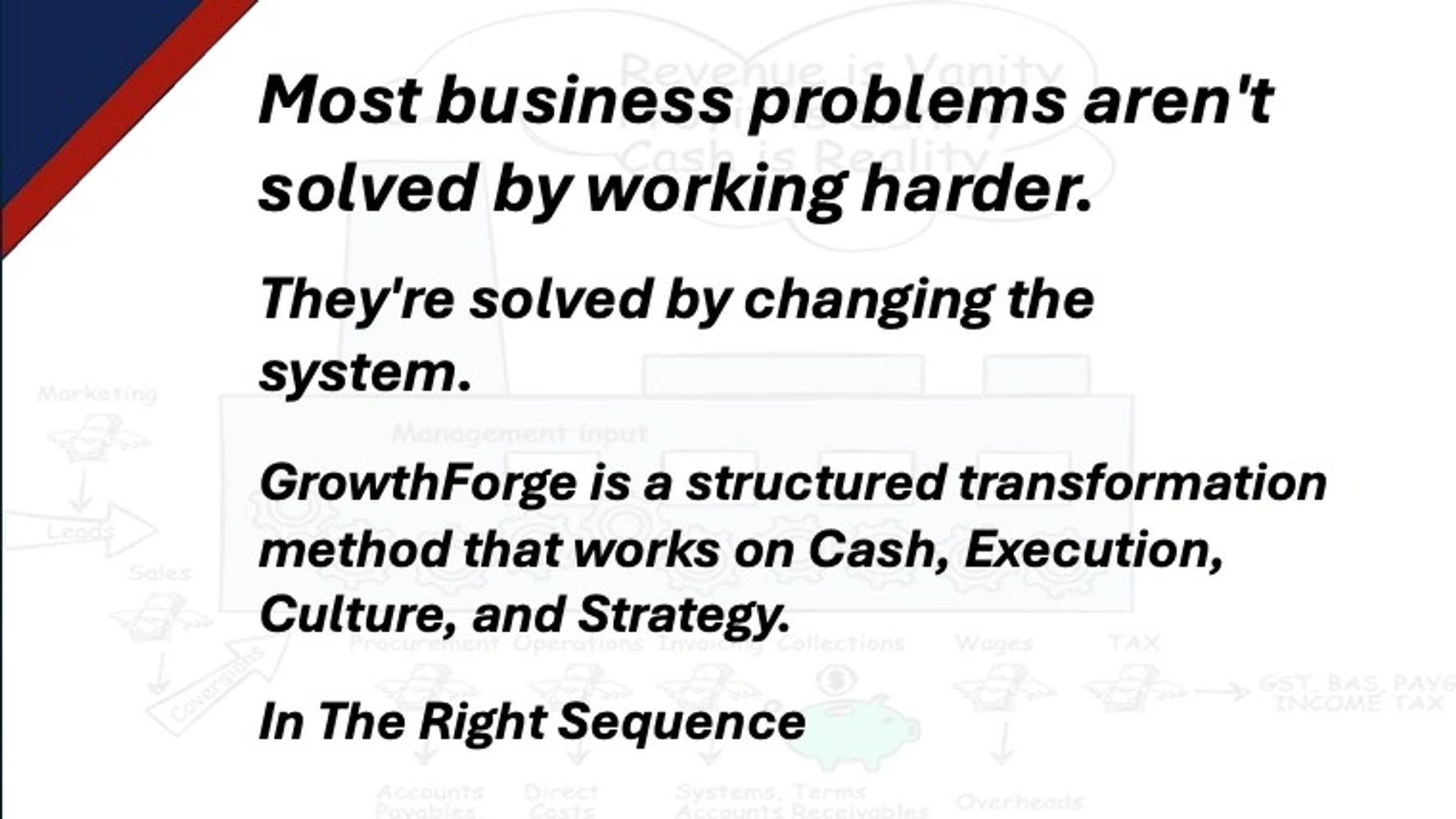 GrowthForge is designed to address these issues early, using a structured, system-led approach that strengthens the business before it becomes fragile